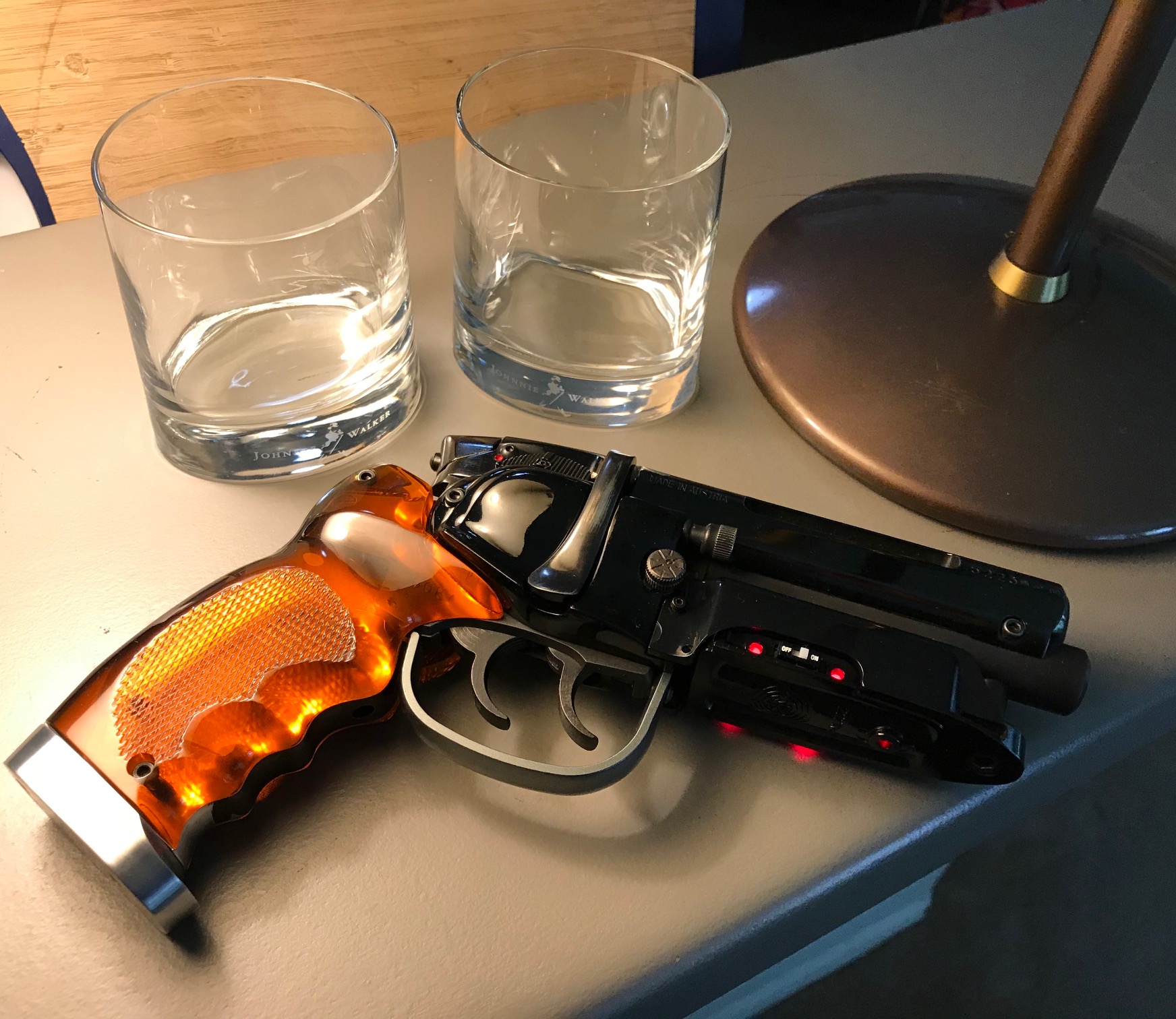 I'm pretty sure I IDed the oval low ball rocks oval tumbler Deckard drinks from at his apartment - they're actually etched at the bottom with the Johnnie Walker name and logo. Snagged a pair off eBay. My search was inspired by white43's post at the top of page 9, although the link he posted shows what appear to be glasses that taper inward toward the top. Could be an illusion, but it doesn't seem to be the case in the photos I took of the Johnnie Walker tumblers.