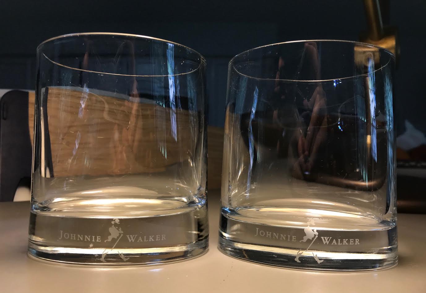 I'm pretty sure that mine once were part of bottle & tumbler set. Here's an example that has the identical tumblers, but with the Johnnie Walker logo and name edged further up from the bottom: