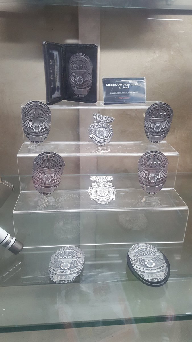 Regarding the ID on the badge, if you look at the POLICE OFFICER badges on the shelves they all have ID strings in the form X N-N.N. The ones that are visible appear to be H 6-3.5, H 6-3.6 (the one photographed for the art book), H 6-3.7 and H 6-3.9. The badges on the bottom shelf are LIEUTENANT L 6-3.5 - these are presumably Joshi's badge (which would mean the first letter of the ID matches the rank). If that's the case, does that make her a replicant too, or is it the presence of a letter in front of the rank letter (K's rank letter is D, which matches his badge rank of Detective) the mark of a replicant?