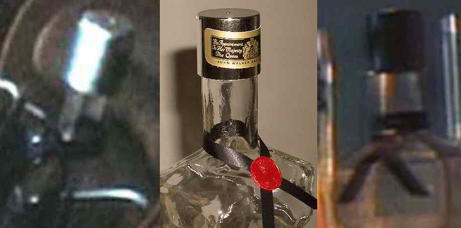 Does it look to anyone else as if the screen-seen JWB Bottles in these two scenes had slightly different caps?