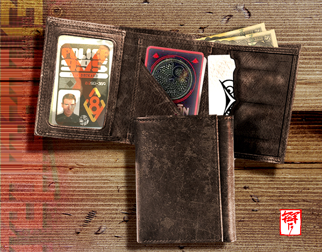 Looking further, I found several wallets with features like those in Deckard's, but never together in one billfold, so I started cobbling an image together in Photoshop. This is "roughly" how I see the actual wallet.