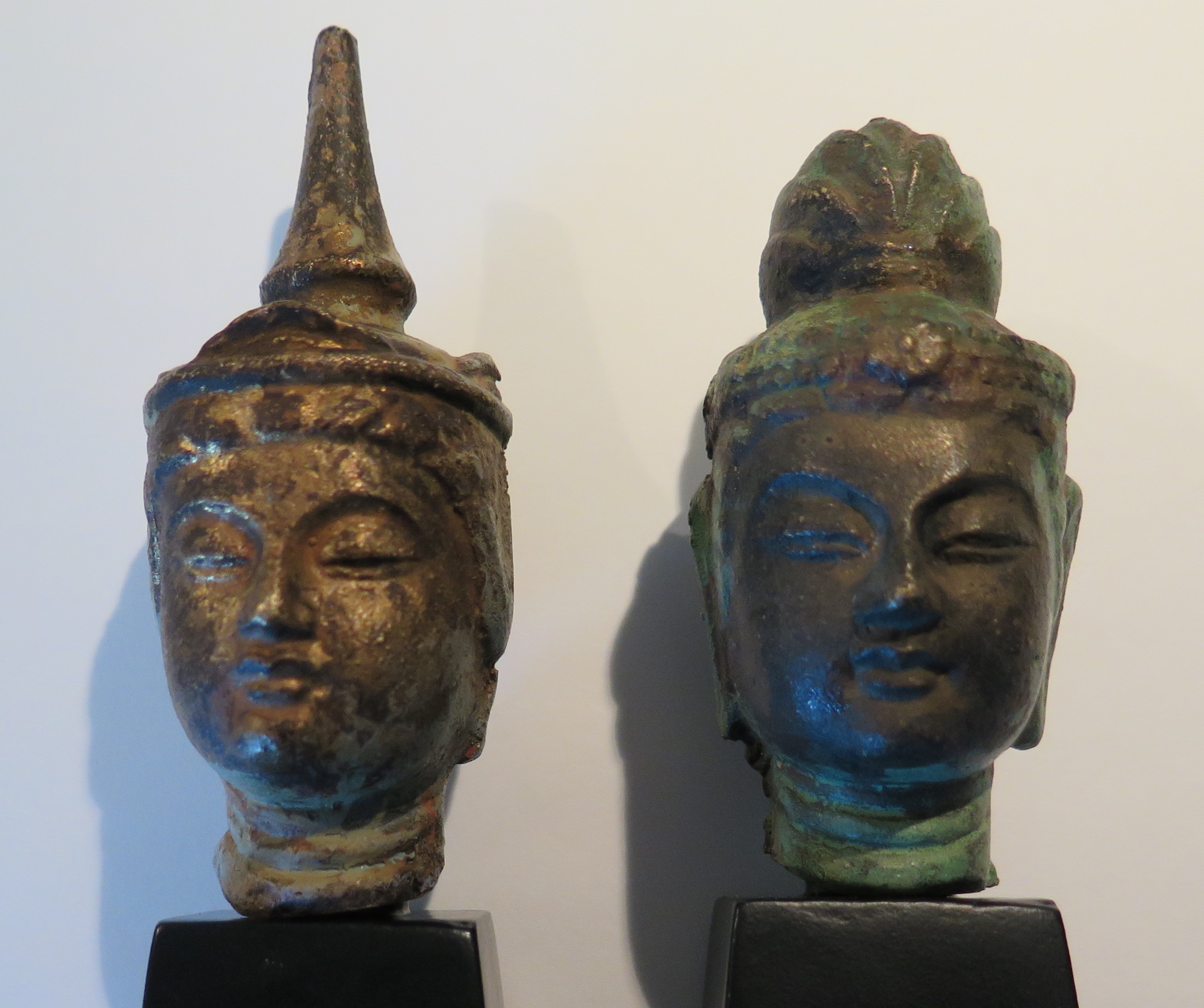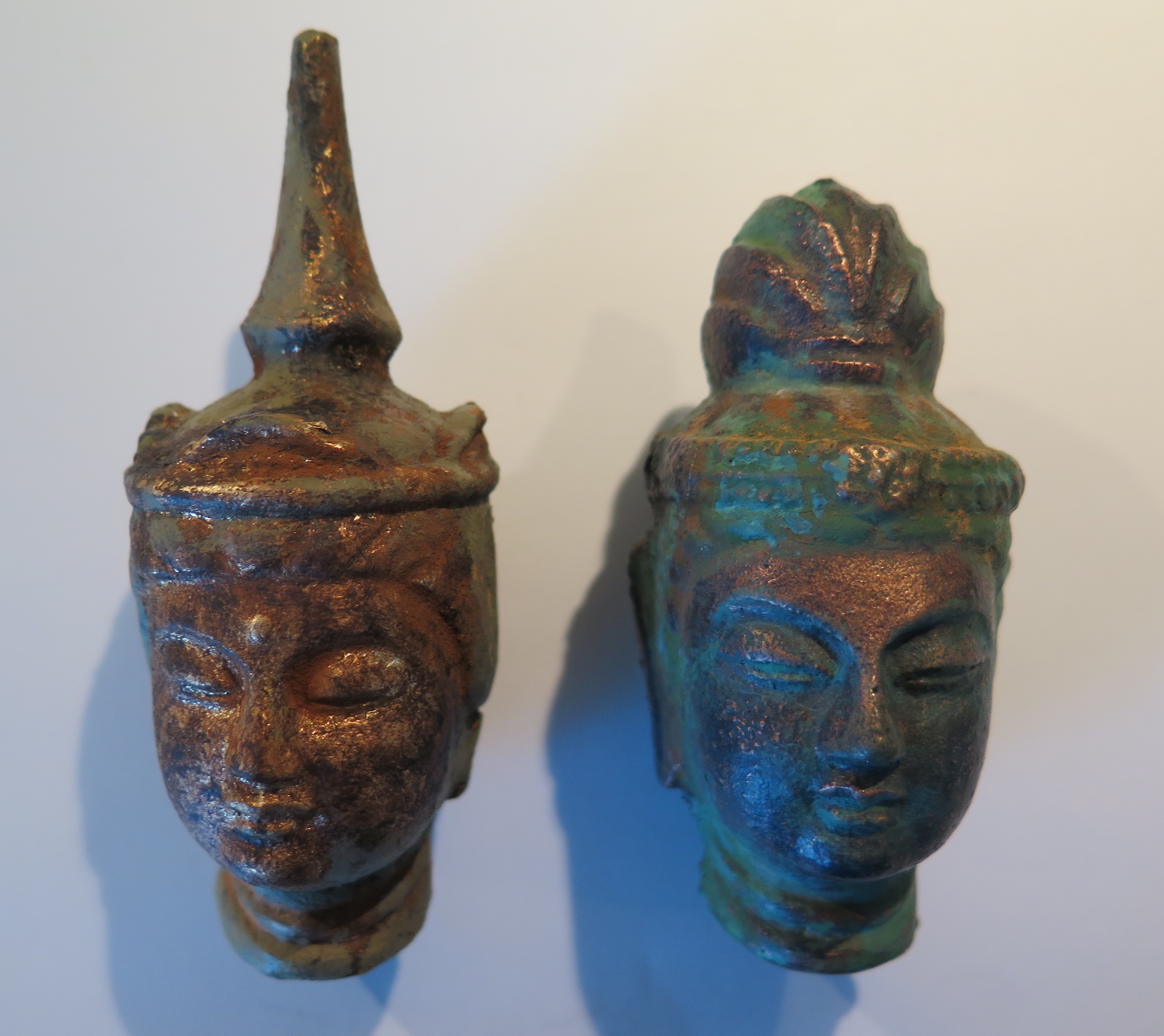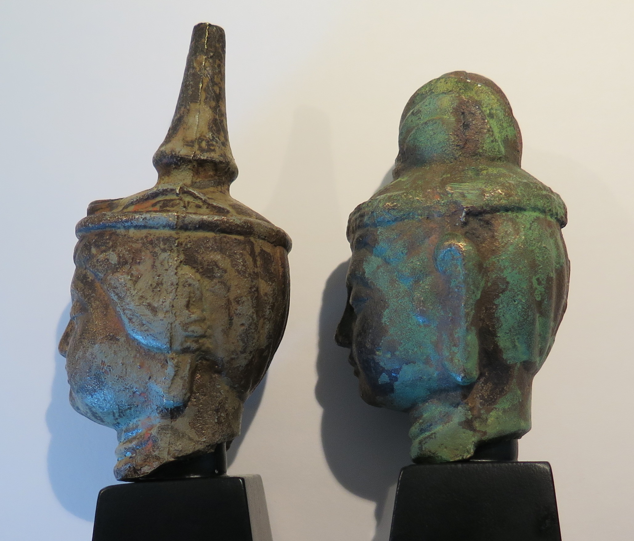 You will receive the two buddha heads and two stands to pose them on. All parts are raw unpainted resin. One stand is slightly higher to allow a screen accurate pose as seen here, but a traditional pose is also possible...