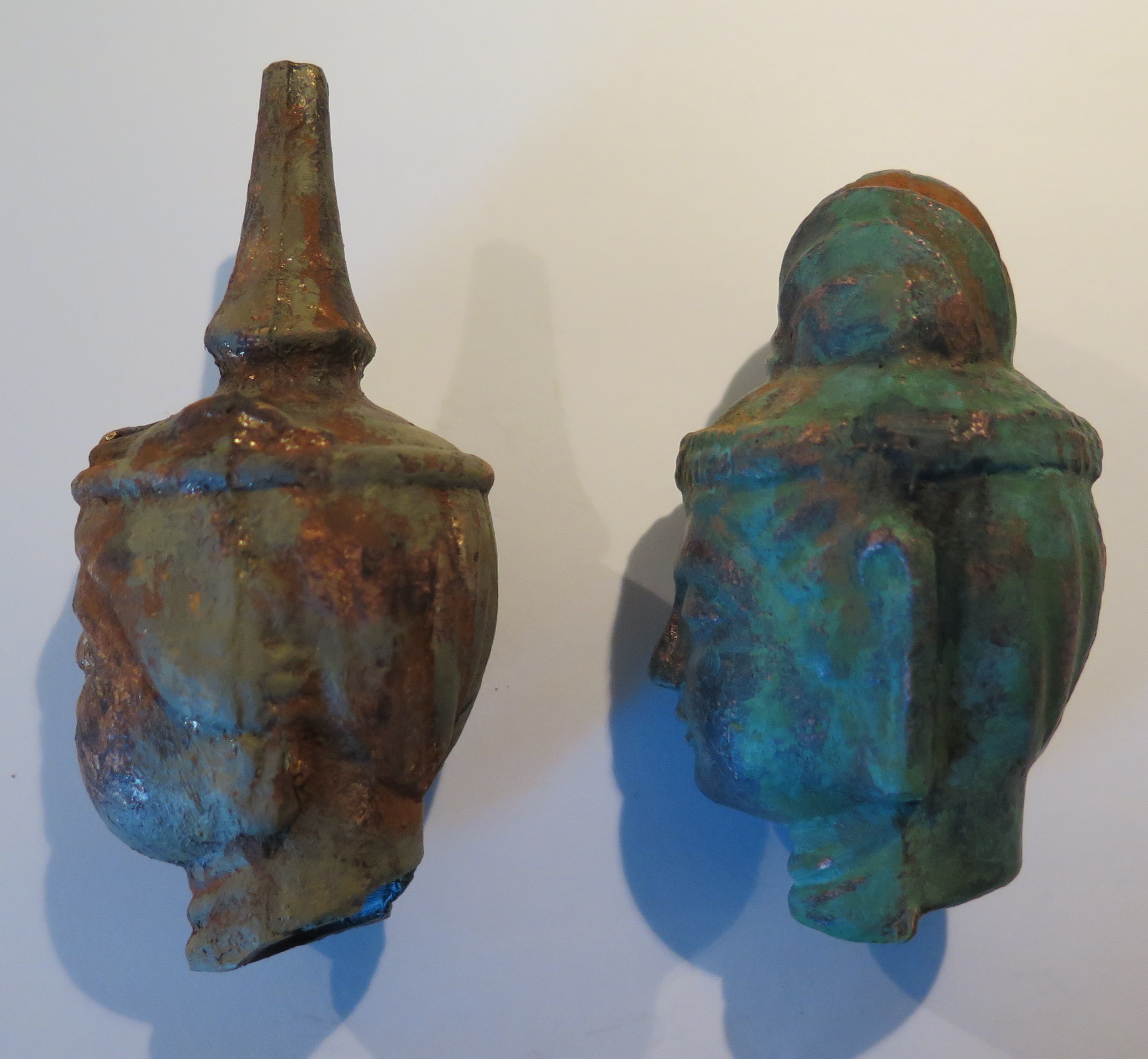 - Use different shades af bright green paint and chipping medium + green pigment to achieve verdigrised effect