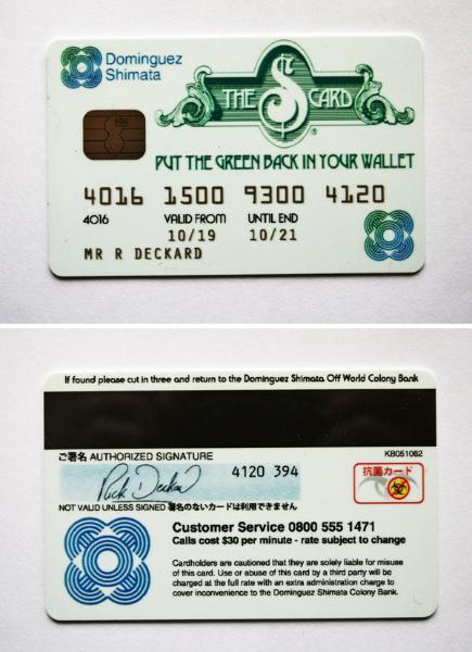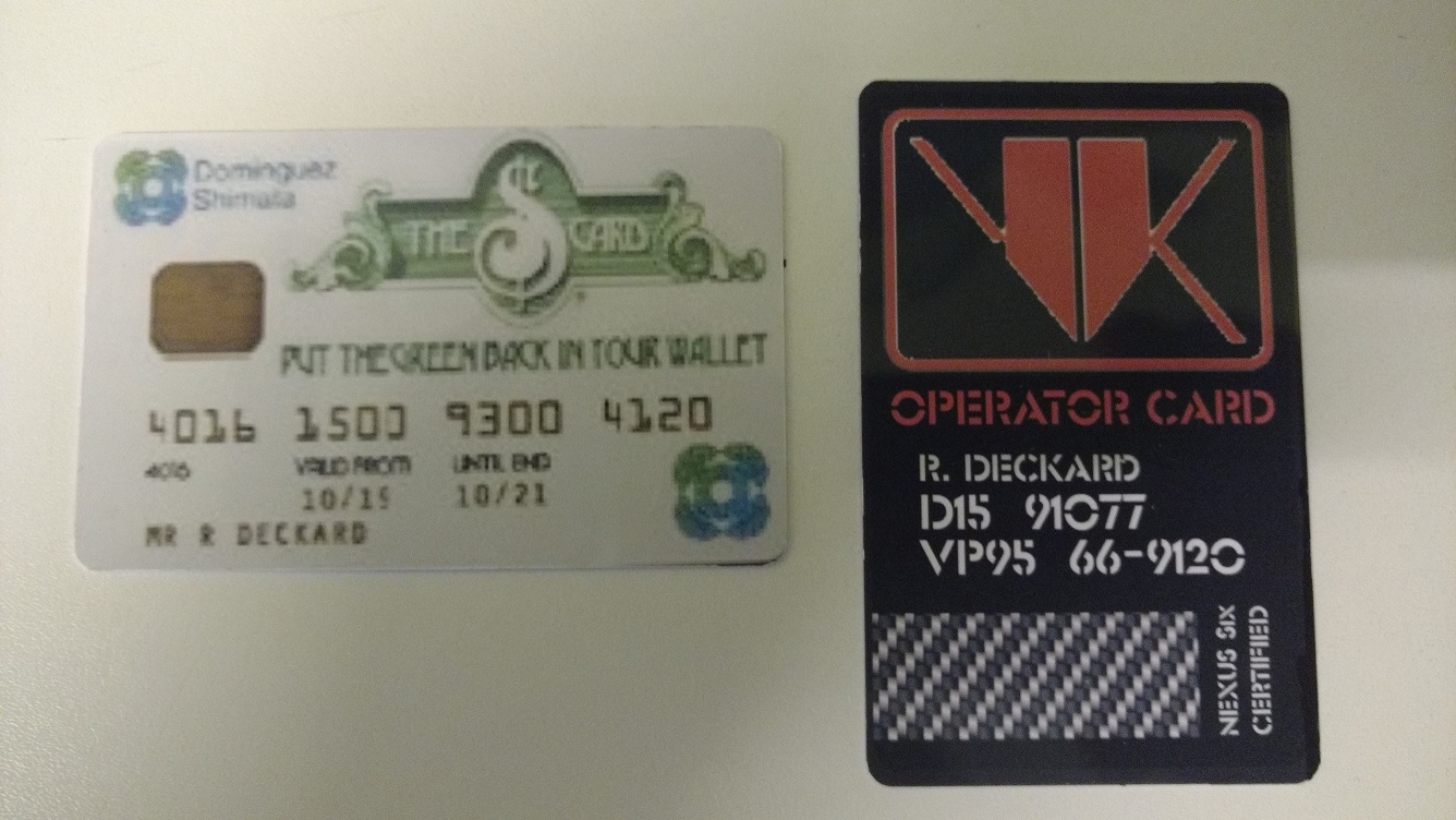 I found a piece of art work someone had shared on the RPF for the deckard "world card" but didn't know anyone with a card printer, so I found an eBay seller who prints ID's etc and theyprinted me up some.